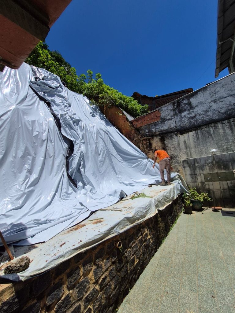 Como medida preventiva, as equipes instalaram lonas de proteção em 20 áreas mapeadas como pontos de risco. A prefeitura também atuou com a limpeza de bueiros e a recuperação de caneleiras, facilitando o escoamento da água nas vias públicas e evitando alagamentos.