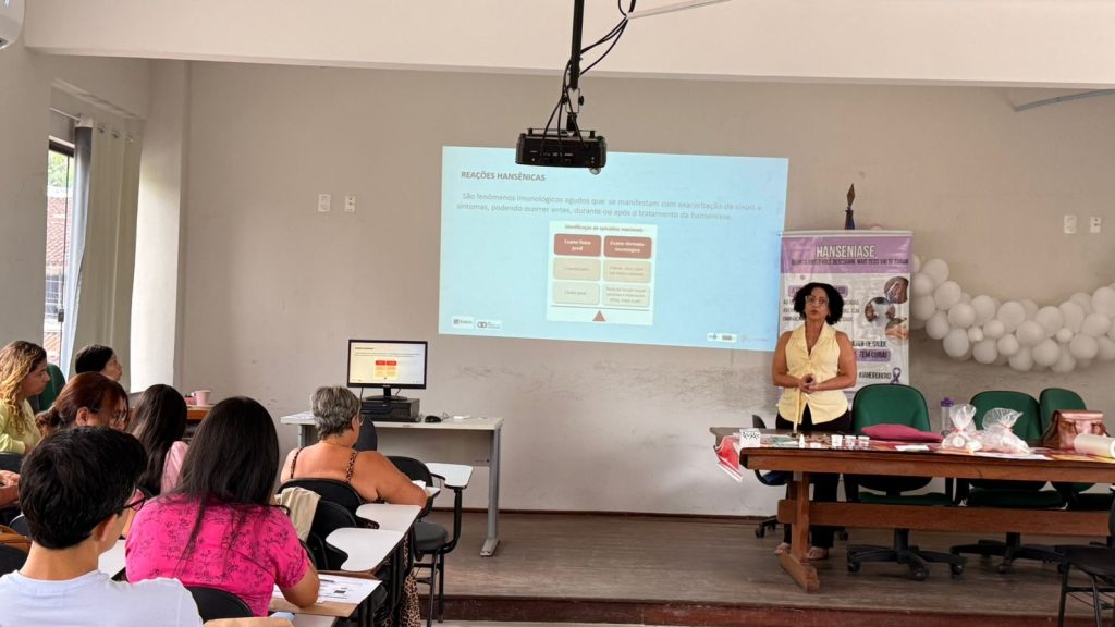 Durante a formação, Eliana explicou que a doença é provocada por uma bactéria que afeta principalmente a pele e os nervos periféricos, comprometendo sensibilidade, força muscular e podendo provocar deformidades se não tratada. Entre os sinais estão manchas com alteração de sensibilidade, perda de pelos, diminuição do suor e enfraquecimento muscular.