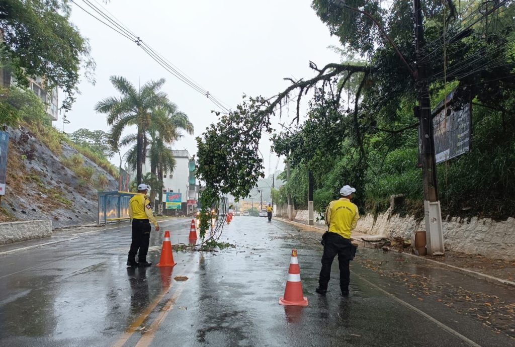 Desde as primeiras horas da manhã deste domingo, as equipes estão em prontidão, realizando a retirada de árvores que caíram em vias públicas, garantindo a desobstrução das pistas, a organização do tráfego e a segurança de motoristas e pedestres.