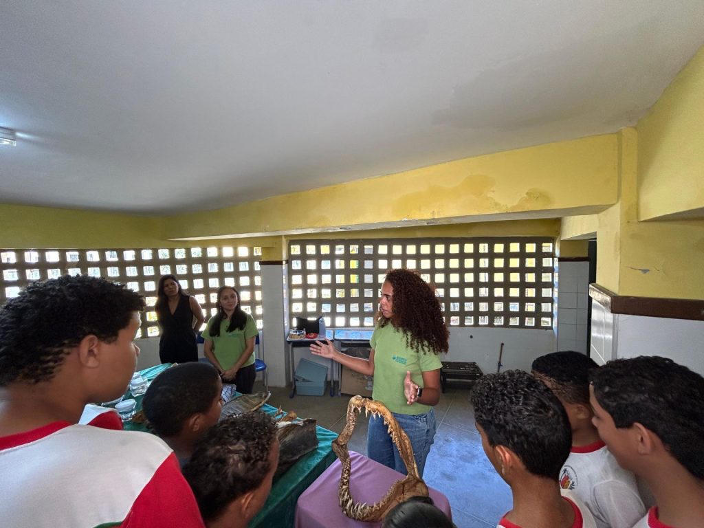 A Prefeitura de Ilhéus, por meio do projeto Maramata Itinerante, esteve presente no Instituto Municipal de Ensino Eusínio Lavigne (IME), na última terça-feira (02). A ação ocorreu a convite da professora de Ciências, Raiana Marques, dentro do Projeto de Ciências “A Vida em Exposição – Conexões entre Evolução e Diversidade”.