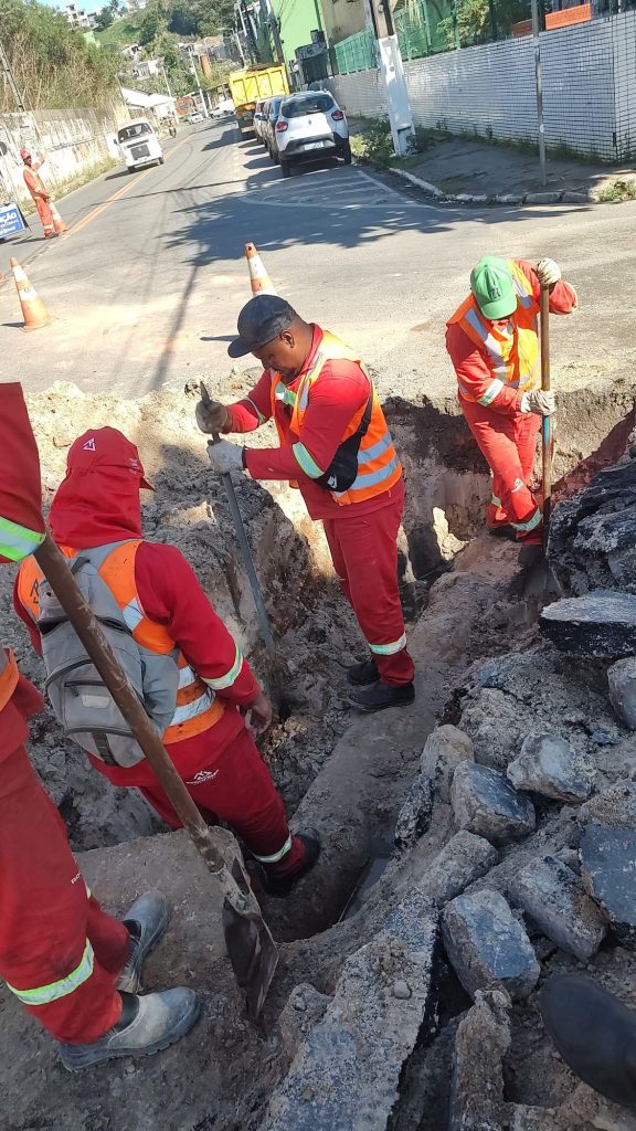 Outro ponto crítico foi detectado na Rua Bento Berilo, onde houve um afundamento do asfalto. A inspeção revelou o reajuntamento comprometido de uma manilha, além de um poço de visita da Embasa com vazamento. A Secretaria de Infraestrutura efetuou os reparos na manilha, e a Embasa atendeu prontamente à solicitação, realizando o conserto do poço de visita.