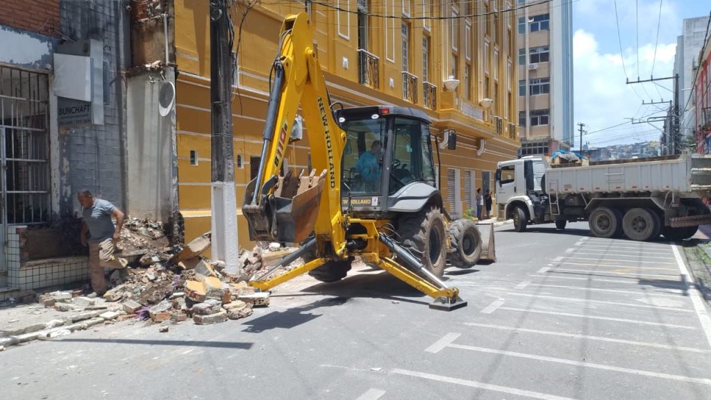 A Prefeitura de Ilhéus, por meio da Secretaria de Serviços Urbanos (Secsurb), realizou neste domingo (26) uma ação rápida para remover os escombros da área que desabou do Ilhéus Hotel, na Rua Eustáquio Bastos, no Centro da cidade.