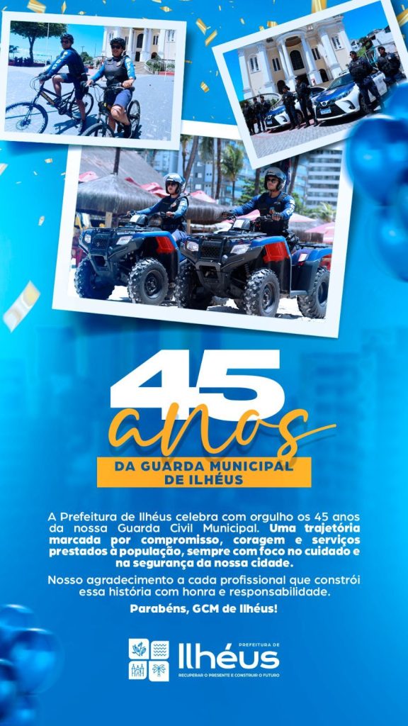 A Prefeitura de Ilhéus celebra, nesta terça-feira (18), os 45 anos da Guarda Civil Municipal (GCM), uma instituição que faz parte da história da cidade e se destaca pelo compromisso, coragem e dedicação ao serviço público. Ao longo de mais de quatro décadas, a GCM tem atuado de forma incansável na proteção do patrimônio municipal, no apoio às ações de segurança e no cuidado diário com a população ilheense.