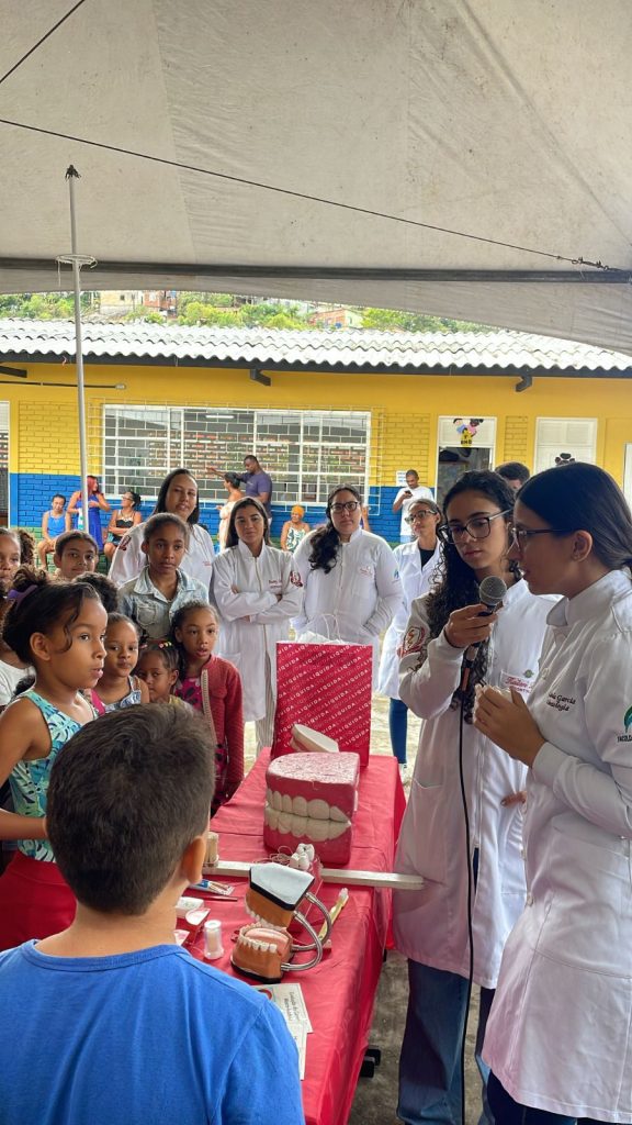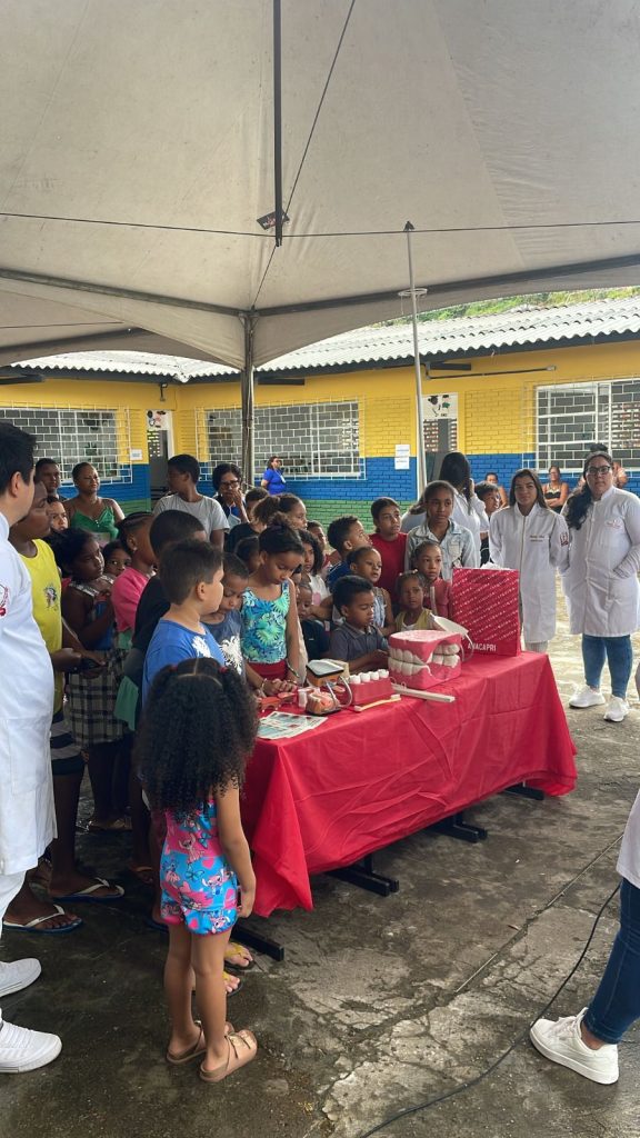 As crianças participaram de escovação supervisionada, receberam kits de higiene bucal e orientações sobre a importância de manter hábitos saudáveis. A professora Cristina Guedes, do curso de Odontologia da Faculdade de Ilhéus, explicou que o momento foi enriquecedor para os alunos da graduação e para a comunidade.
